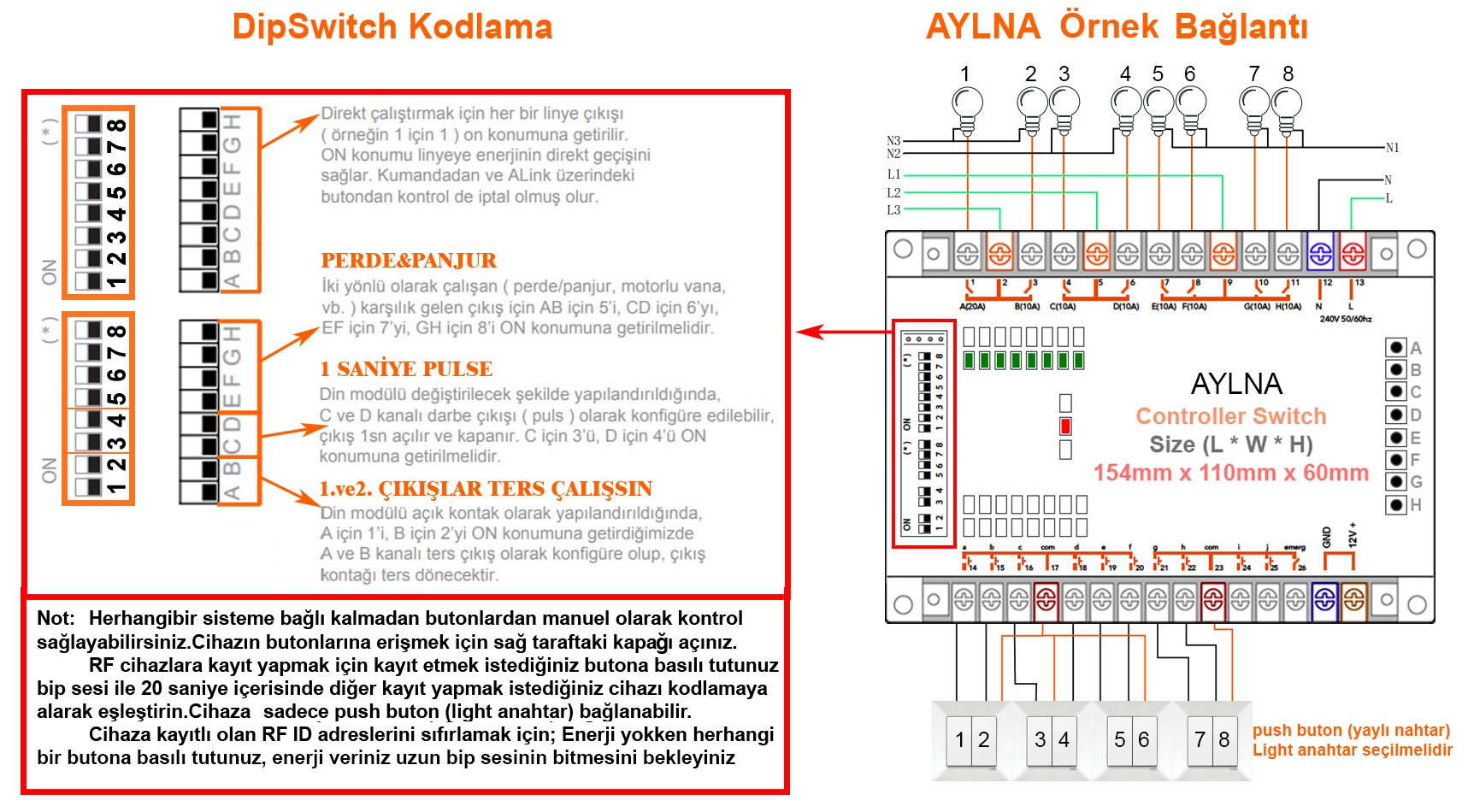 Ray tipi 8 Çıkışlı Akıllı RF kontrol Modülü